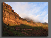Während der langen windlosen Zeit fuhren wir mit dem Bus nach las Americas, das bei uns den Eindruck eines kleinen Las Vegas hinterließ und nichts mehr von dem einheimischen Flair ausstrahlte. Außerdem mieteten wir uns ein Auto bei "Bello", die einzige Autovermietung für Leute unter 21 Jahren, und fuhren nach Santa Cruz, Masca und auf den knapp 4000 Meter hohen Berg Teide.